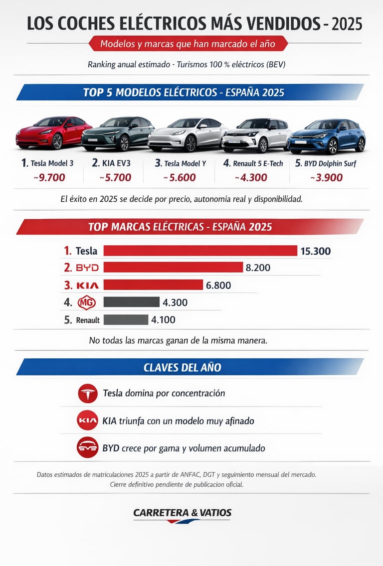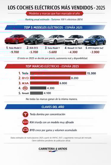 Ya no basta con mirar un ranking y señalar un ganador. El ejercicio que deja 2025 es más interesante: qué modelos funcionan y, sobre todo, qué marcas están construyendo realmente el mercado eléctrico español.