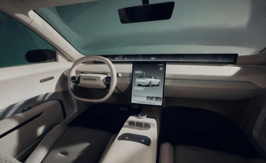 El Vision O apuesta por un habitáculo de vanguardia con un Horizon Display de más de un metro de ancho, acompañado de una pantalla central vertical. La consola central incluye carga inalámbrica magnética y los materiales son reciclados y de origen vegetal.