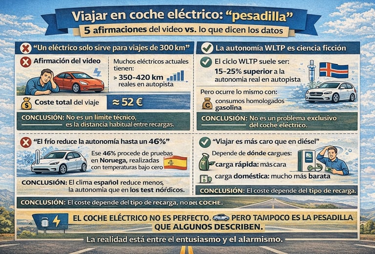 Un vídeo vuelve a afirmar que viajar más de 300 km en un coche eléctrico es una odisea. Analizamos sus argumentos y los contrastamos con la realidad de 2026